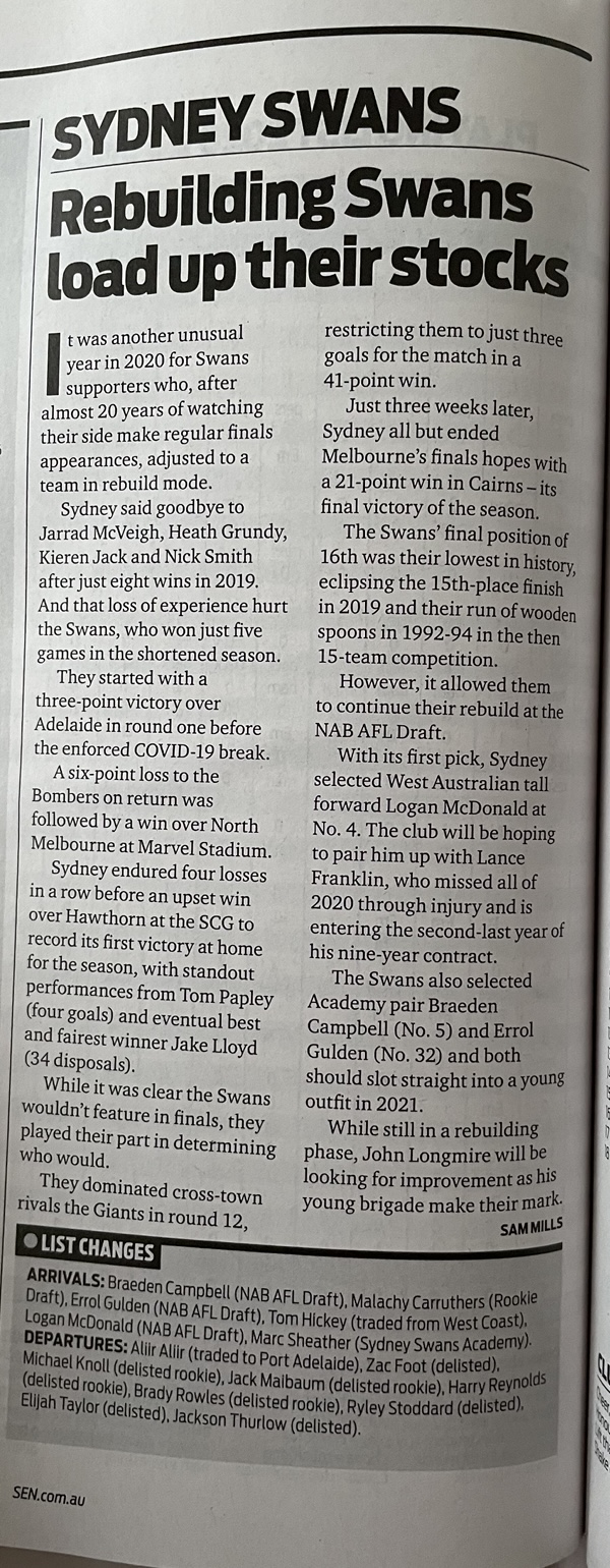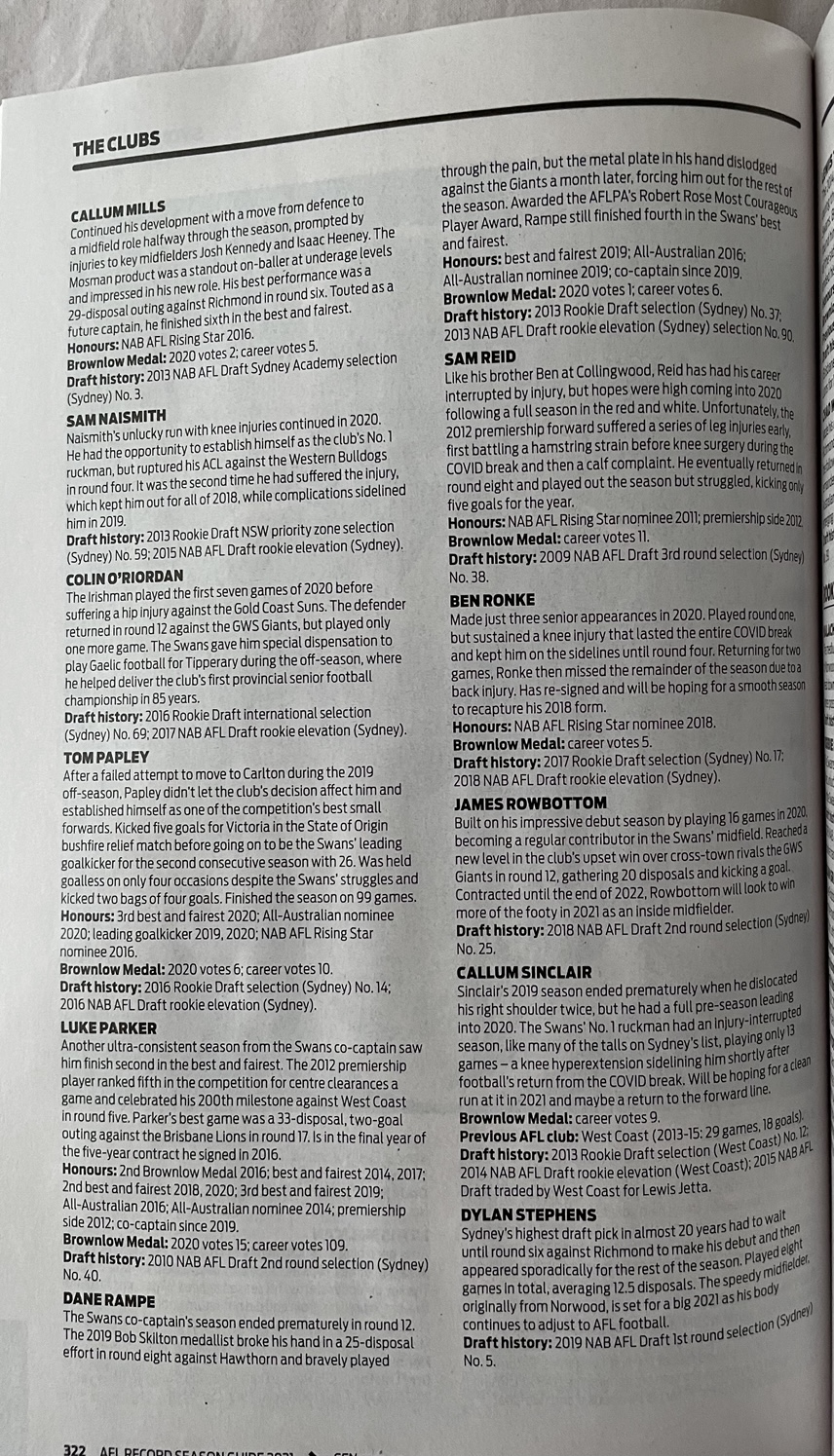 In July 2020 I began contributing to the AFL Record. West Coast vs Collingwood Elimination Final reviewMoment by Moment: The 2020 AFL Grand FinalAFL Season Guide: CollingwoodAFL Season Guide: Sydney Swans Like Loading...